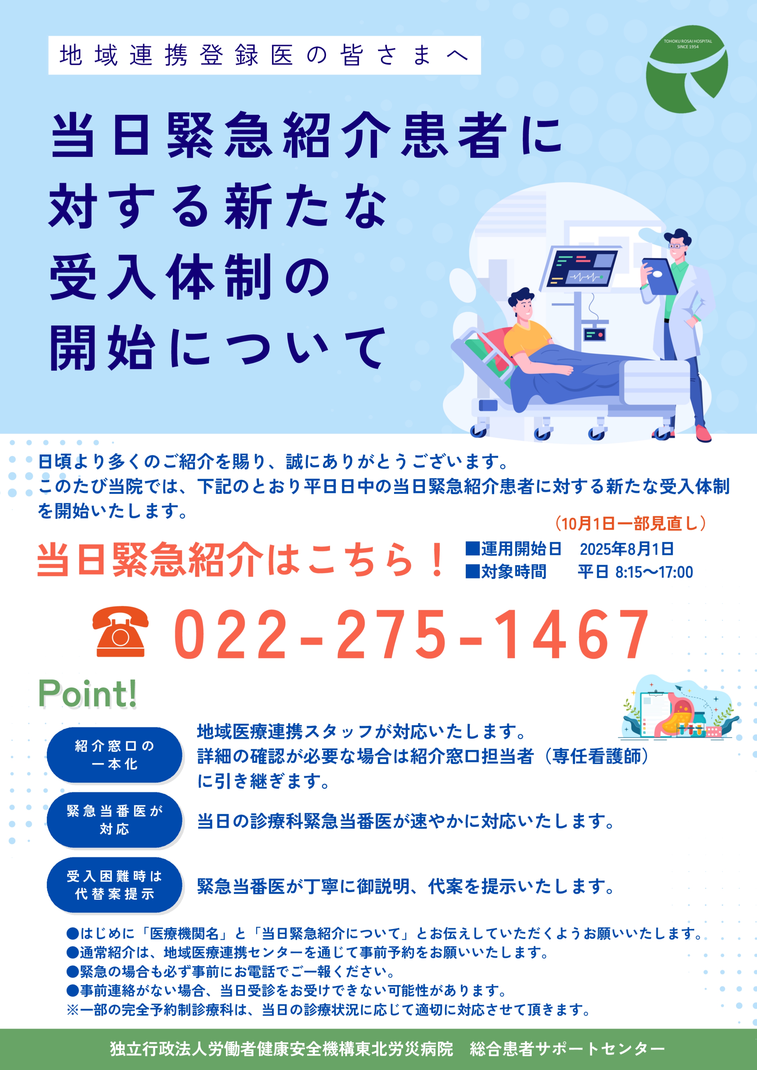 平日日中「当日緊急紹介」に対応する新しい受入体制開始について