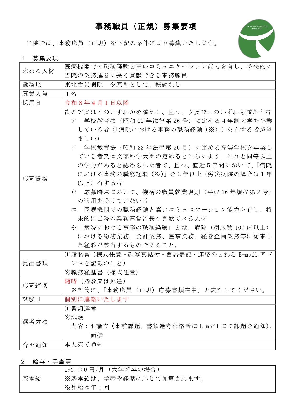 臨床研修医募集要項